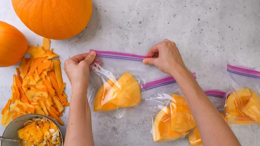 Na tomto místě bude dýně uložena nejdéle – rok nebo více. Můžete se podívat na video, jak správně zamrazit dýni na zimu.