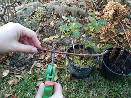 - Vyberte zdravé, dřevnaté výhonky hortenzie.