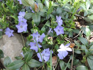 Barvínek (vinca) – kožovité listy, dobře roste a kvete prakticky od jara do pozdního podzimu.
