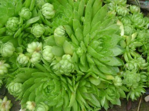 Molodilo (kamenná růže, přeživší). Čeleď Crassulaceae. Ideální pro nižší úrovně skalek a alpských skluzavek. Kromě toho, že je rostlina sama o sobě velmi dekorativní, kvete i barevnými květy.